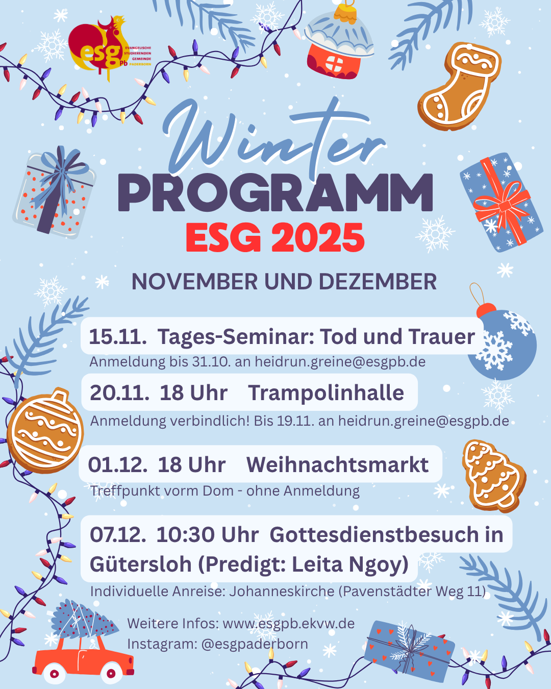 Herzlich Willkommen auf der Homepage der Evangelischen Studierendengemeinde Paderborn (ESG).